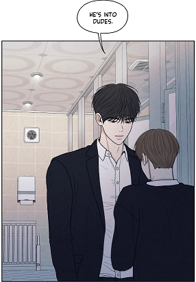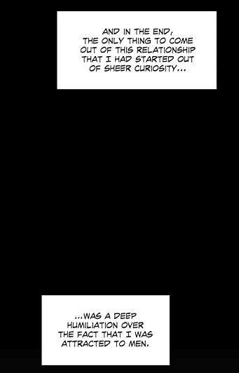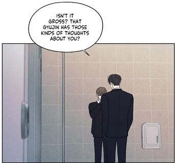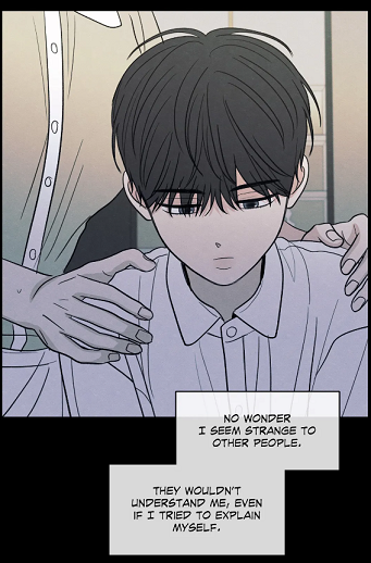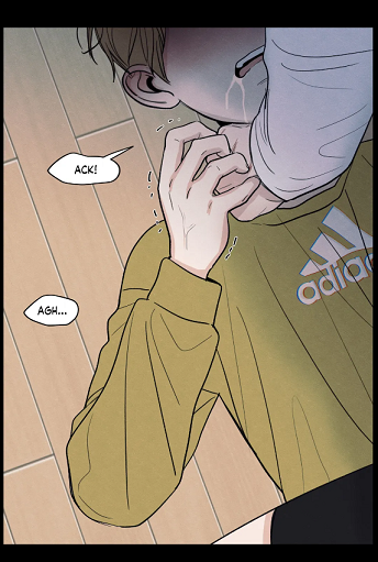 But there exists another reason why Soo-Young views himself as a “weirdo”. It is related to his sexual orientation. (chapter 6) He is viewing homosexuality as a “stain”, for it is rejected by Korean society. He fears people’s gaze and judgement and in my opinion, this anxiety is also strongly intertwined with his origins, the son of a single mother. This explicates why he rejects to be seen as a homosexual. He doesn’t want to be touched in public or even to kiss. This fear explains also why Soo-Young misinterpreted Tae Jihwan’s words. (chapter 18) The latter was not rejecting homosexuality per se, rather Gyujin as partner. Yet, his words were so ambiguous that Soo-Young imagined that Jihwan was repulsed by homosexuality. But here, I have to add that Lim Gyujin played a role in this negative perception of homosexuality. (chapter 12) The usage of blackmail is exposing the existence of a taboo, a violation of social norms. And how did Gyujin come to this solution? It is because the latter has been hiding his own attraction to Soo-Young as well. He justified their relationship by stating that Soo-Young had a crush on him. (chapter 5) He went so far as to say that the main lead had been flirting with him. (chapter 6). That way, Gyujin was avoiding assuming any responsibility. By acting this way, Gyujin was hiding his own sexual orientation. He appears as a hypocrite and coward. No wonder why Soo-Young saw his sexual orientation as a heavy weight. But since the seme got violent with Soo-Young (chapter 6), the latter decided to break up with him. That’s how the blackmail started. (chapter 6) Gyujin made sure to isolate Soo-Young. The former made the protagonist feel guilty and dirty, the moment Soo-Young pushed him away. Besides, his first sexual experiences (chapter 21) with Gyujin were negative, for they were associated to coercion and violence. This explicates why Soo-Young could only see homosexuality as a monstrosity. Therefore he could only view himself as bizarre.