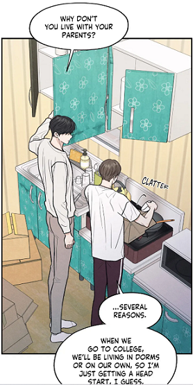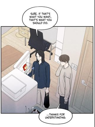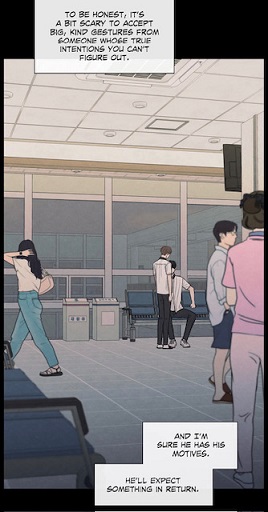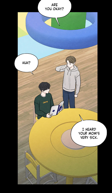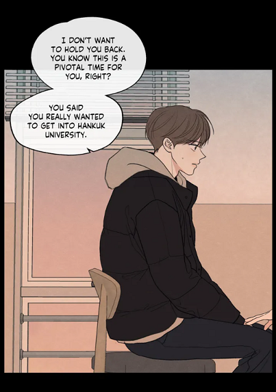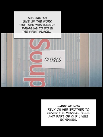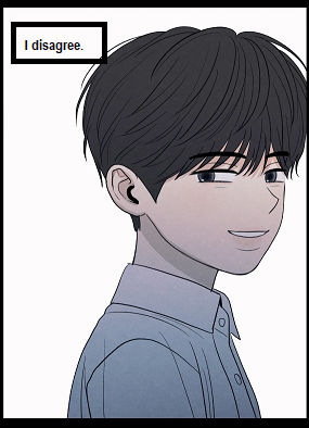 First, it is relevant to know about his family background. He is the son of a single mother which represents a huge stigma in South Korean society. (chapter 2) Why? It is because children are supposed to receive the father’s name. To conclude, his birth represents a huge anomality. This explicates why Soo-Young is not mentioning his family situation to others so easily either. Only when he faced trouble, he confided to Gyujin and Tae Jihwan. As the son of a single mother, he considers himself as a burden and stain. This explicates why he is not living with his mother. Even when they are struggling financially again, (chapter 23), he prefers moving to a cheaper place than returning home. Observe that he is even admitting that his mother’s place is more comfortable than his new worn out flat. (chapter 27) I am also assuming that since he started visiting high school, he has been living on his own. Under this new perspective, it becomes comprehensible why Soo-Young is trying to act like an adult all the time. He doesn’t desire to add more stress and responsibility on his mother. No wonder why the student is not confiding to his own mother either. (chapter 23) He feels that if he let her know about his struggles and problems, he would add more trouble to his parent. Because Soo-Young always sees himself as a burden to his “family” (he would cost money), he feels indebted towards them. He needs to repay them by “becoming a contributing member of society”. (chapter 2) This means, he has to become successful at school and get a college degree so that once he gets a job, so that he can become the mother’s pride. However, this means that he is putting himself under pressure. He promised to his family, he would enter Hankuk University, but his counselor is suggesting to apply elsewhere . (chapter 28) On the other hand, this imposed exclusion is not entirely voluntary, for this was initially suggested by the mother and uncle. (chapter 2) Moreover, later he confesses that he feels very lonely. The best evidence that Soo-Young’s decisions are the result of the mother and uncle’s manipulations is their conversation at the hospital. Soo-Young didn’t desire to move away. (chapter 2) His shaking hand was betraying him. He was upset. But note that the mother portrayed herself as an hindrance to her son. (chapter 2) Moreover, the manhwaphiles should pay attention to her body language. She was closing her eyes, when she convinced her son to move out and to apply for Hankuk university. (chapter 2) Finally, during her visit, when her son repeated her wish: (chapter 23), she had a similar reaction. She turned away her head and closed her eyes (chapter 23) before adding this peculiar comment: (chapter 23) She insinuated that it was her son’s wish, yet the reality is that these wishes had come first from the mother and uncle! This explicates why she never objected to his desires. In other words, Soo-Young’s negative feelings about himself are caused by the mother and uncle’s advices and behavior. She told her son that she was a burden to him, thus the latter mirrored these feelings. He was a burden for the mother.