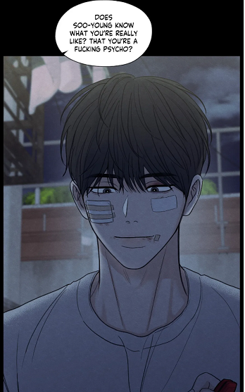 Even Tae Jihwan criticized him for his delusion. (chapter 22) To conclude, this character is an antagonist, but his monstrosity only comes to the surface, when it comes to Soo-Young.