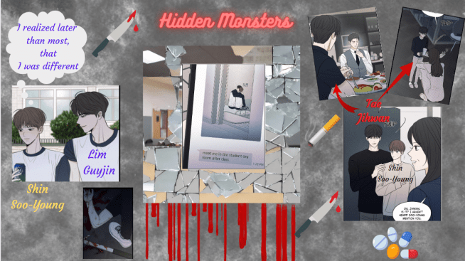 Interesting is that by examining Soo-Young, the Manhwa lovers could detect the presence of other “hidden monsters”, Gyujin, the mother and the uncle, for they all have been manipulating the main lead.