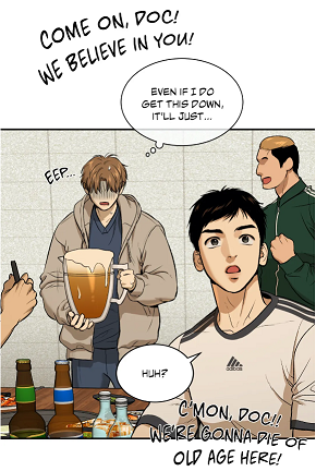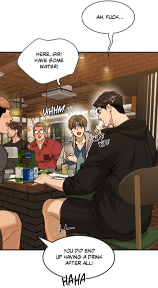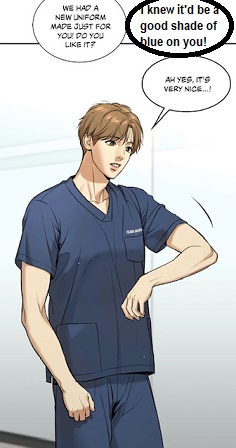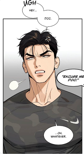 (chapter 41) Yet, he was still crossing his arms while talking to the physical therapist. This shows that he has not completely lowered his guard yet. Finally, Manhwaworms shouldn’t overlook the doctor’s drunken confession accompanied with kisses and embraces.