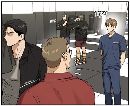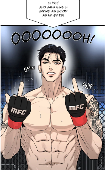 (chapter 44) Why? It is because this sex session will have an impact in their work, MMA. During that night, they became real fuck buddies. Sex was not related to work and fighting. But why did the notion come to the surface for the sparring? It is because MMA fight consists of challenges, which implies consent. Striking is that so far the champion never rejected a challenge. Yes, Joo Jaekyung was put in the same situation than Kim Dan in the end, but the one putting under pressure was the MFC Matchmaker and naturally the agent from Entertainment agency. Don’t forget that both are earning money thanks to events. And how did the champion got convinced by them? “You think, you can do it?” With their words, they doubted his talents