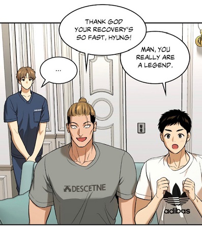 (chapter 36) After that event, they learned their lesson. However, note that the champion refused that the physical therapist would follow Oh Daehyun and the others to their fight.