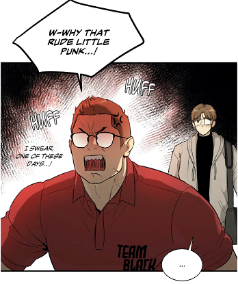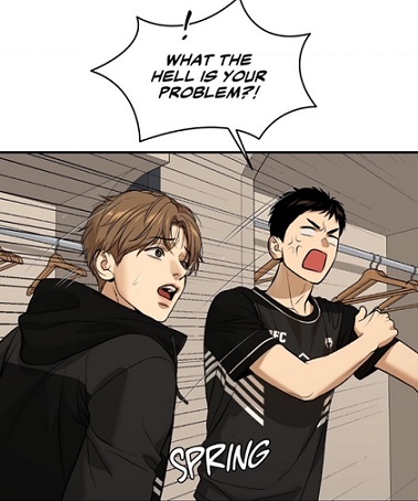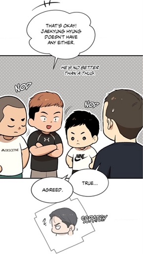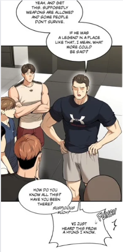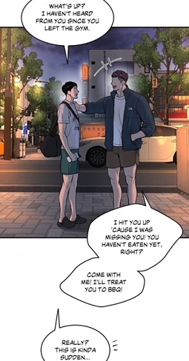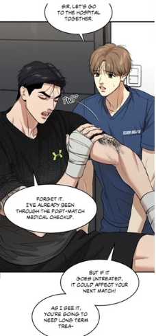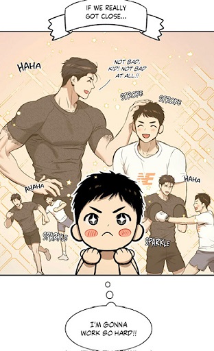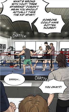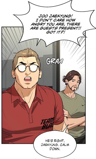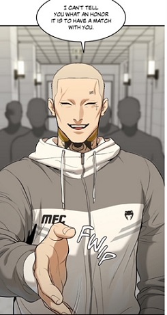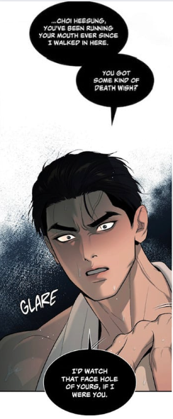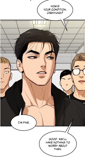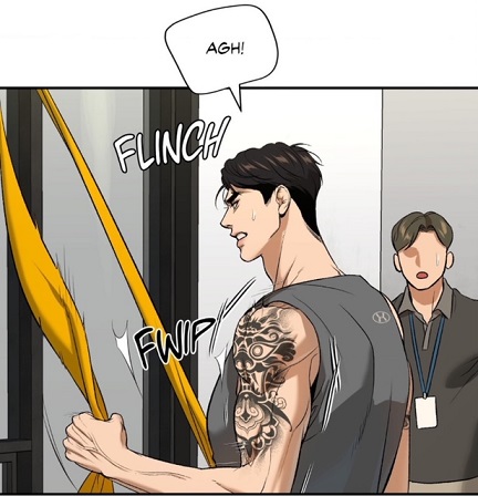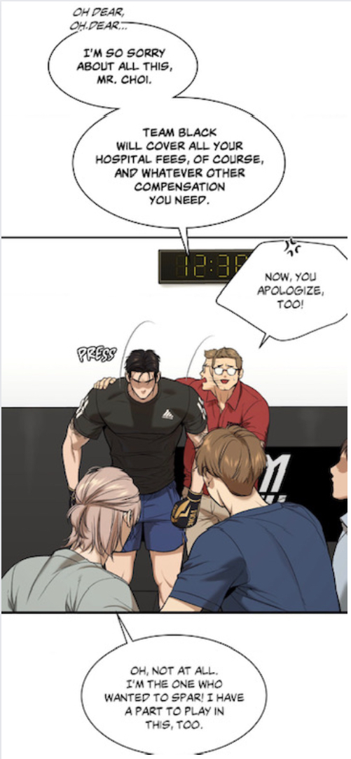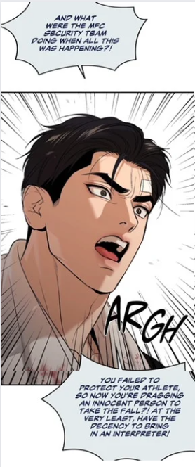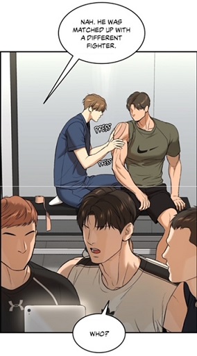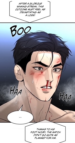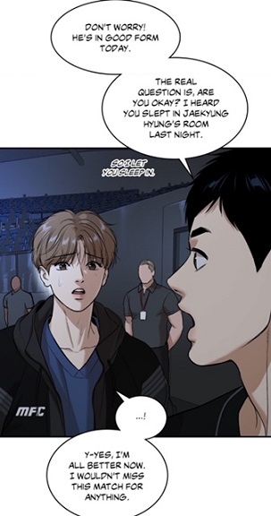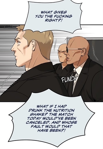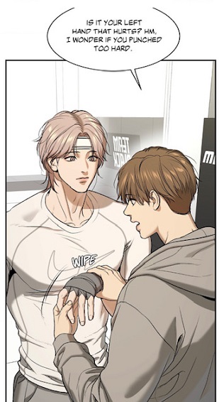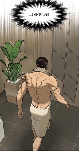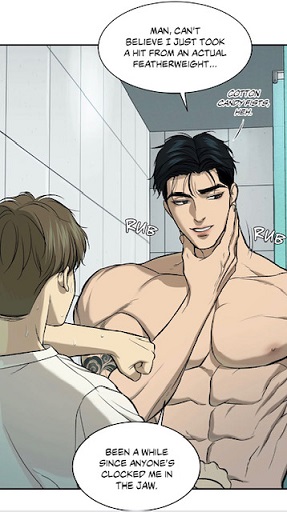 (chapter 34) However, they were in a public place, the hotel’s sauna, and the actor is a celebrity. Hence he is protected by his fame and social status. That’s the reason why the champion didn’t hit his frenemy, he had learned his lesson at the gym.