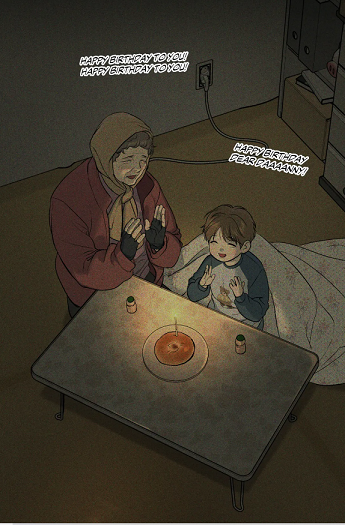 Under this new light, it makes sense why the halmoni suffered, when she was separated from her grandson. She might have struggled financially, but she was happy, when they were together. Her grandson represented her source of happiness.