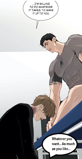 (Chapter 34) What Heesung wanted was actually a lie by omission or commission which would have been presented as the truth. Through this game, the actor thought that he could impose his will onto the celebrity. He anticipated the athlete’s silence. This signifies that he knew about the star’s denial and turned it against him. Besides, that way Heesung could maintain his good image: he had not stolen his partner and as such there was no cheating. No one was betraying him.