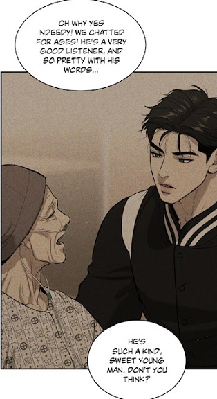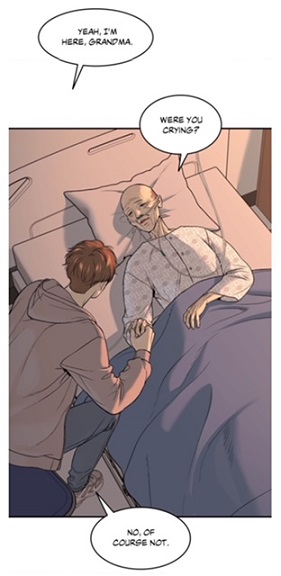 (chapter 35) As a rather selfish person, Heesung would see no problem in such a passive attitude. It is because Potato is bringing him happiness. But what about the doctor’s suffering? No one is suspecting about the physical therapist’s suffering: the rejection from Joo Jaekyung and the imminent death of his grandma. In verity, this passivity helps him to lie low and keep his relationship with Potato a secret.