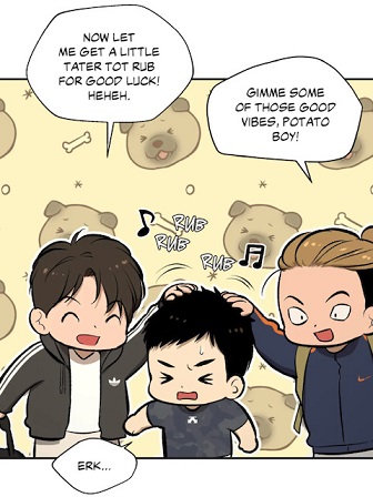 (chapter 26), I feel like the chow-chow could become a great source of comfort for Kim Dan and also for the boss of Team Black, just like he did it with Heesung. How so? It is because he stands for courage and strength. Moreover, the moment the owner of Black Team knows about the relationship between Heesung and Potato, he won’t longer feel threatened by them. He needs to discover the existence of friendship. Besides, since Kim Dan sees the maknae as a puppy dog,