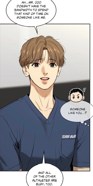 (chapter 31) It was not his right to intervene in the doctor’s business. The protagonist is actually a free-lancer. Hence he should be the one to select his clients. This shows that as long as the athlete doesn’t consider the comedian as a friend and supporter, he will never achieve his goal. He needs to value human relationships and see people as precious gems and not everyone as a rival and source of danger. On the other hand, I would like my avid readers to keep in mind that Joo JAekyung still remained silent, when he discovered that the comedian had tricked him.