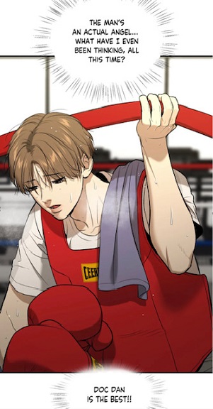 (chapter 51) He could sense the wound in doc Dan’s voice and gaze. It is important, because the sentence “You don’t trust me?” is actually constructed like a statement and not like a question. It only becomes a question through the tone. Through the latter, the champion could detect his partner’s genuine pain. The wounded tone could only move the champion’s heart. Kim Dan dared with a single question to shake the fighter’s confidence. No wonder why he reacted badly.
