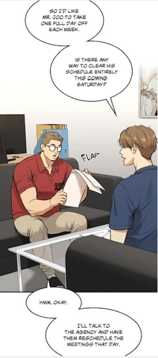 (chapter 29) and the star knows this, he could ask the youngest member to guard his physical therapist, similar to this scene: