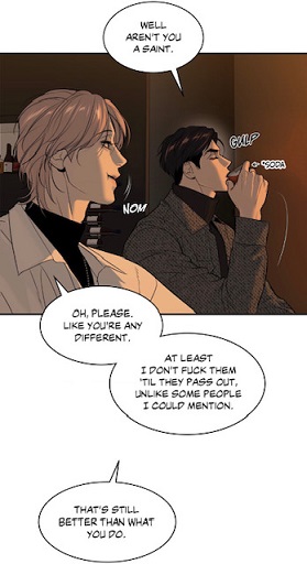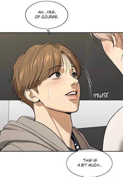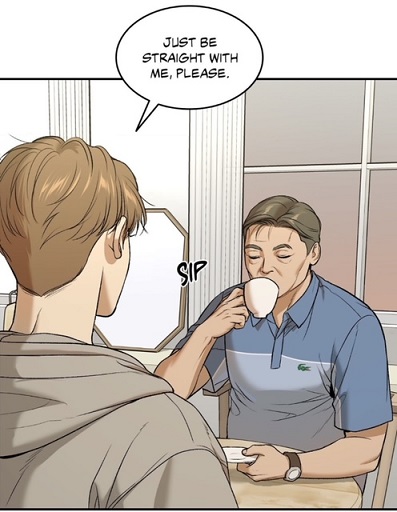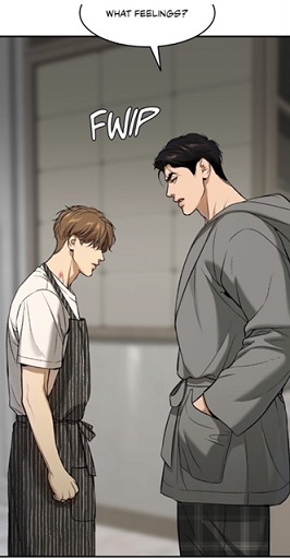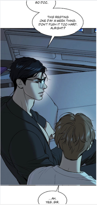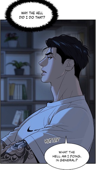 (chapter 48) Yes, he didn’t dare to tell him what had happened. No truth… no daring which reflects the games in the sauna and the living room of the penthouse. Kim Dan could have come clean the next morning, but no. This panel explains his silence. He also mistrusted his VIP patient. He had a negative perception of his lover’s mental state. On the other hand, the champion’s attitude reminded me of a parent who has not the time to listen to his child’s problem due to work.