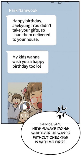 (chapter 34) Yet, the message is exposing that Heesung was still lying, as he kept using work as an excuse. Hence Joo Jaekyung had to intervene again: