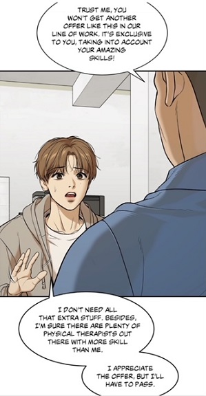 (chapter 51) But note that at no moment, he is accusing him of an assault. Because of this confrontation, Joo Jaekyung and Kim Dan had a honest conversation. The doctor asked him a painful question