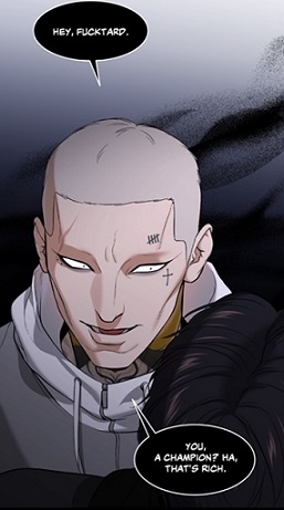 (chapter 50) This scene exposed that the champion repressed a certain incident which is rather common among victims of a trauma, especially people suffering from PTSD. This shows that some traumatic event took place for quite some time, but the champion acted, as if nothing had happened.