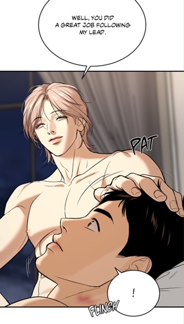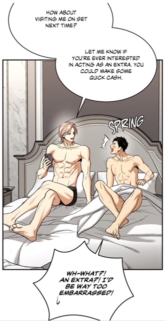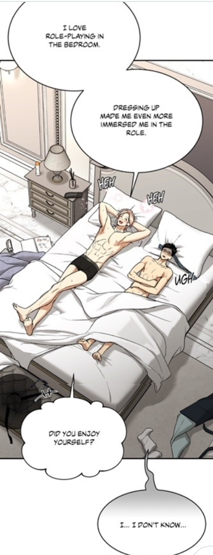(chapter 41) In other words, both second leads are on the same wavelength despite the misunderstanding. Both have the same expectations: Friends With Benefits. Yet, they are not equal in their relationship, as Potato feels indebted towards the actor so that the latter has “Zero regrets”. In other words, he is bound by a debt and a contract. He has to please his partner, he can not refuse to his demands. That’s why Heesung said this