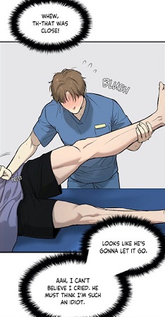 A poignant recollection surfaces in Episode 61. (chapter 61) The physical therapist remembers an encounter bathed in bright light, where they stood before a couch: the doctor had removed his pants while the champion remained fully clothed, positioned behind him. (chapter 61) After both reached climax, the sportsman swiftly departed—a stark demonstration of his habitual retreat into distance and fear, even as he ensures the doctor’s pleasure. (chapter 61) This calculated “running away” underscores the return of old insecurities and the persistent need to assert control. Since the doctor was still living in the penthouse and as such was still working as the star’s physical therapist, it becomes comprehensible why the athlete could only resort to strength to keep his fated companion by his side. He had rejected his “gratitude” and “emotions” before.
