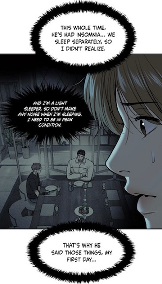 And now, you know why Cheolmin is so important. (chapter 13) He is the only doctor who has ever examined the protagonist so closely and even paid attention to his fingernails! (chapter 13) At the same time, the chingu from the club was the first one pointing out that his wounds were never treated!! Furthermore, I realized that the doctor’s lies from episode 11 (chapter 11) could appear in a different light: he was not beaten by Heo Manwook, but he truly tripped on the stairs due to his weak constitution, a new version of this scene: (chapter 59) He would space out and even fall asleep at any moment.