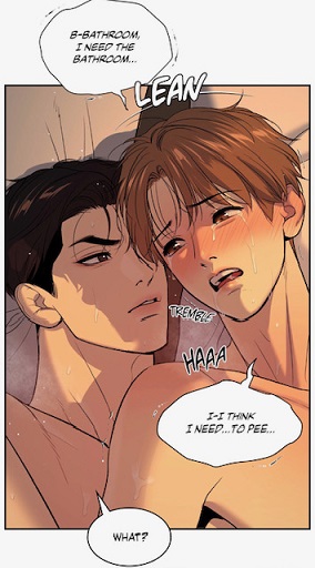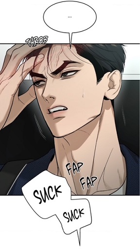 Then in episode 55, we see the champion going to the restroom for sex. (chapter 55) For the first time, he accepted someone other than Kim Dan in such a private room, a sign that the man was getting stronger mentally. However, while he was receiving a fellatio (chapter 55), he showed no reaction. In fact, his headache got even worse than before. (chapter 55) The champion’s passivity and migraine could be the symptoms of the athlete’s past suffering. His pain worsened in that place because of the past, but he didn’t realize it, for he was so focused on his soulmate. Secondly, the moment he was about to get kissed (chapter 55), he pushed the uke away and left the place (chapter 55).In this place, he could show vulnerability, yet he experienced that nothing bad happened to him. This explicates why after this experience is willing to remember and even reconnect with the doctor.