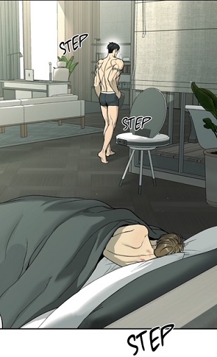 The black underwear Jaekyung clings to is not just a remnant of concealment—it is also a recurring symbol of his emotional armor. A significant clue can be found in the way he wakes up after sleeping with Kim Dan. In Episode 4 (chapter 4), we do not see whether he is wearing anything the morning after. After their “magic night” in the United States (Episode 39), the next morning, he is only shown taking a shower (chapter 40) —meaning the audience never sees him leaving the bed. However, in Episode 45, the author deliberately includes a shot of Jaekyung leaving the bed while still wearing his black boxer briefs. (chapter 45)