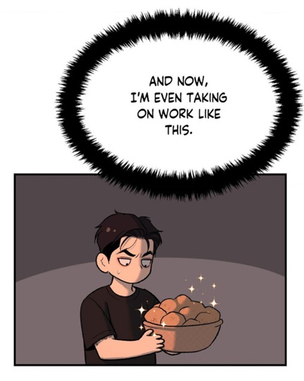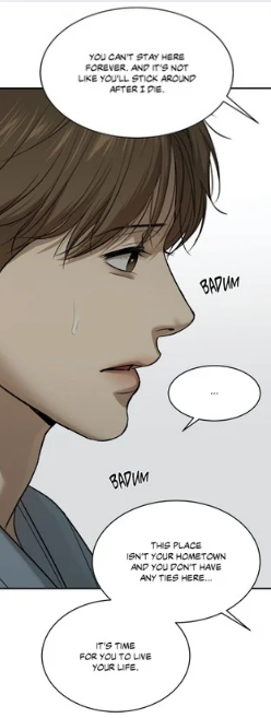 Kim Dan’s choice to rent from an elderly landlord (chapter 57) is another manifestation of his conditioned role as a caregiver. By living with an older man, he creates the illusion of a familial bond, mirroring the dynamic he shared with his grandmother. This decision highlights his struggle to break free from the identity imposed on him—one defined by servitude and selflessness. He assumes that he should take care of the landlord, offering to cook and expressing guilt for not fulfilling this perceived duty. Yet, the landlord subtly challenges this narrative. By inviting Kim Dan to eat breakfast (chapter 57) and dismissing his apologies, the landlord treats him as an equal rather than a caretaker. This dynamic forces Kim Dan to confront his false perception of himself.