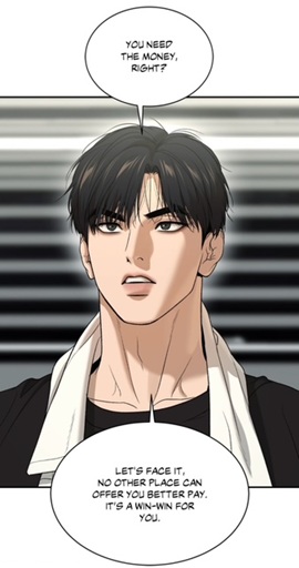 The hypocrisy is undeniable. (chapter 61) Joo Jaekyung pressures Kim Dan to work through his pain, (chapter 61) despite living a life where he is forced to do the same. He became what he despised—someone who forces another to sacrifice their well-being for business. (chapter 60) The reality is, both of them exist in a world where their worth is determined by what their bodies can endure. Kim Dan’s value is measured by his ability to work, just as Jaekyung’s is determined by his ability to fight. They are both trapped in a system that demands their suffering for profit, used by those in power who see them as tools rather than individuals.