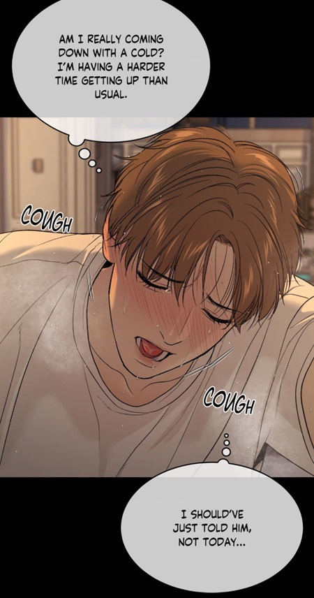 Shin Okja’s emotional detachment opens a door for Joo Jaekyung to step into her place, but this transition is contingent on Joo Jaekyung admitting his feelings for Kim Dan. (chapter 61) The physical reminder of Kim Dan’s poor health is not only a wake-up call for Joo Jaekyung but also for Kim Dan himself. It emphasizes that caregiving cannot define his identity entirely, and he too needs care and consideration.