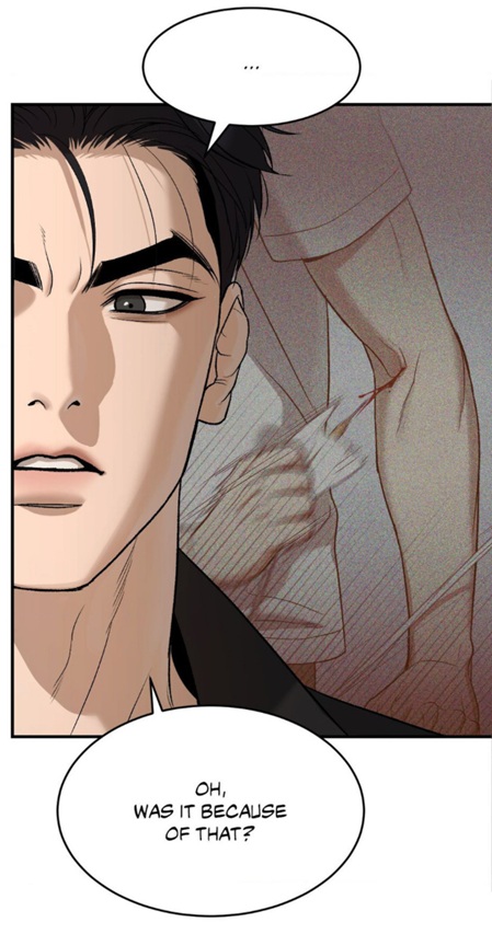 This moment ties back to the fundamental shift in Jaekyung’s character. His ability to assert dominance through touch has been his primary means of control, yet now, it is failing him. The physical contact remains, but it no longer guarantees submission. For the first time, he is experiencing what it means to be present in an intimate moment without having complete control over it. This explicates why he retorted to his old MO, (chapter 64). He thought, using strength could still help him to conquer Kim Dan’s heart, though it is just an unconscious attempt.