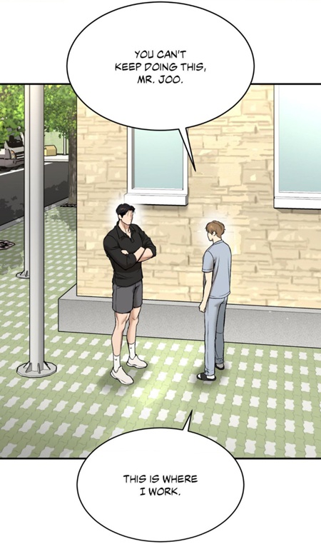 This, however, mirrors Joo Jaekyung’s own existence. (chapter 40) He is paid to receive bruises, to push his body past its limits (chapter 50), to endure pain while the public watches and profits are made. His suffering is entertainment, a spectacle that fuels the business of MMA. Though he is a champion, he is still a commodity, expected to perform regardless of his condition. (chapter 61) He understands, better than anyone, what it means to be physically used for the sake of others, yet he remains blind to the fact that he has placed Kim Dan in the same position. While one has no file about his health condition, the other has many files, but they are not studied, because this would push the manager to question his decision and even ruin the business: (chapter 17) I doubt that Park Namwook studied them, and notice that the recently hired PT didn’t ask for the champion’s files first: (chapter 54) Thus I deduce that the champion’s files are in reality a subterfuge. They give the impression that the doctors and Park Namwook truly care for his well-being, but it is not correct. They are only interested in his body because of wealth and reputation. But let’s return our attention to episode 61 and the champion’s attitude towards Kim Dan.