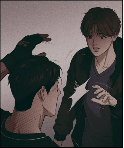 Unlike before, where he might have passively endured, here he holds back his emotions, suppressing whatever urge he might have to respond to Jaekyung’s touch. (chapter 64) The lip bite signifies hesitation but also resistance. It reflects his internal struggle: he does not want to engage, but something within him still reacts. He still has feelings for the athlete. This small gesture encapsulates his frustration—not just with Jaekyung, but with himself.