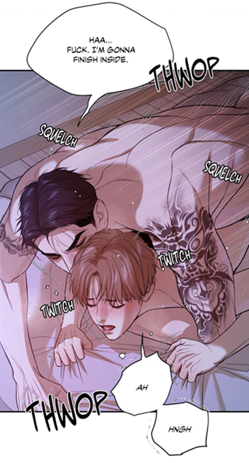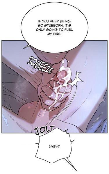 What makes this shift even more significant is how Jaekyung reacts to Kim Dan’s rejection. In the past, his response to resistance was often intimidation (chapter 03) or passive-aggressive remarks. (chapter 6) However, in this moment, he does not react with anger or coercion. (chapter 63) While he does voice his frustration, he does so without force, showing an unprecedented level of emotional regulation. Instead of demanding compliance, he chooses a different approach—he focuses on Kim Dan’s pleasure, attempting to bridge the emotional gap through physical intimacy (chapter 63) rather than control. This decision is not merely about sex; it is an unconscious attempt to regain Kim Dan’s attention, to re-establish a connection that he does not yet fully understand but deeply craves.