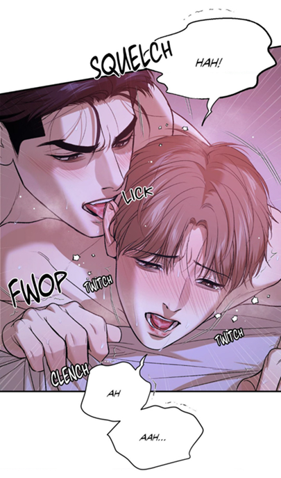 Licking someone’s ear is an inherently intimate gesture. Unlike biting the neck (chapter 45) or shoulders, which can be overtly sexual or aggressive, the ear is a sensitive spot, connected to emotions and perception. The fact that Jaekyung chooses this specific form of contact suggests a subconscious shift—he is not just trying to control Kim Dan but also to connect with him. (chapter 64)
