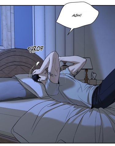(chapter 68) He rests his chin not on Dan, but on his own hand, his arm propped on the edge of the bathtub. This detail is telling: even in a moment of supposed closeness, Jaekyung relies on himself for support, not on Dan. He is physically near but emotionally braced—still holding himself apart. His thoughts are private, tender, and possessive. In a rare moment of introspection, he confesses that