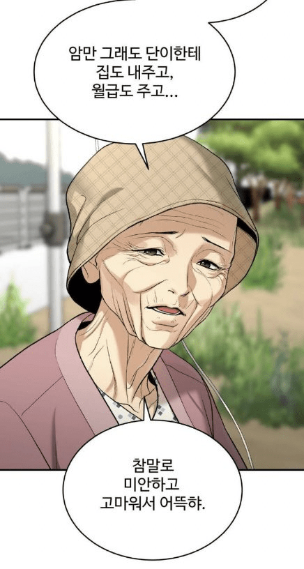 (chapter 57) Therefore I am expecting an argument between the halmoni and the inhabitants of 33-3. The landlord embodies the opposite values of Shin Okja.
