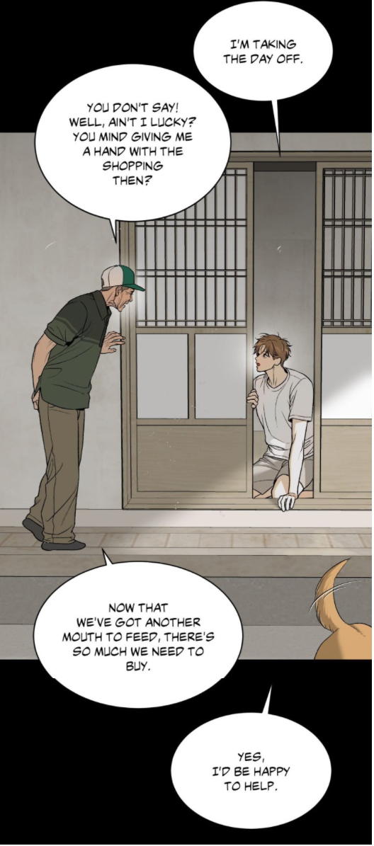 (chapter 62) As he helped them with manual tasks—such as lifting goods or assisting the elderly—they started seeing him not as an outsider, but as one of their own. However, it is important to note that these gestures of inclusion occurred while Jaekyung was outside the blue gate