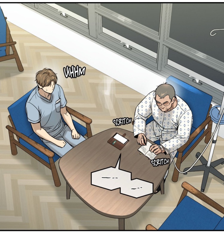 (chapter 59) but because he fears that the patient’s family might sue the hospice. The elderly man’s condition was formally assessed, documented, and protected. This scene exposes that they can act in an emergency (taking tests). In contrast, Kim Dan—who is visibly unwell—is not offered even a basic check-up. His illness is reduced to tired eyes and missed sleep, framed as personal negligence rather than systemic failure. He is looked at, not truly seen. While the patient is treated as a legal liability, Dan is treated as disposable labor—an expendable worker whose wellbeing doesn’t justify institutional resources. Thus in my opinion, the director of the hospice suggested that doc Dan took a day off in order to ensure that he had done his duty, taking care of his employee.