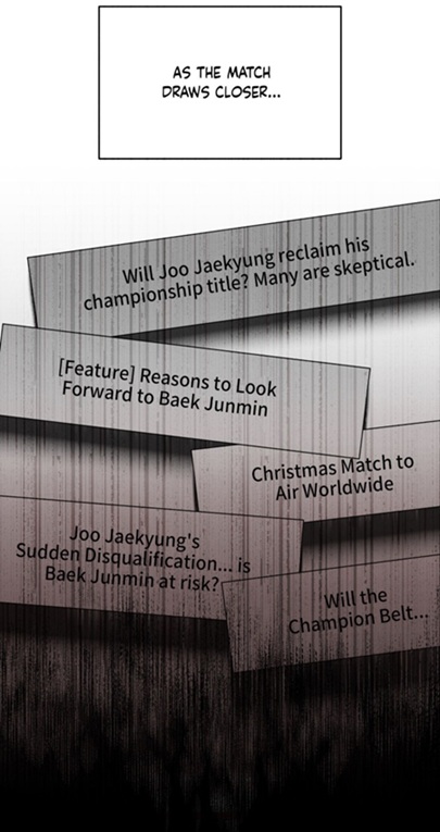 (chapter 52) Victory must be seen, fixed, and circulated in order to become real. In this respect, Baek Junmin’s position reveals a fundamental volability. His so-called victory does not produce a defining image. The match that secured his title was neither clearly decisive nor widely broadcast, leaving no shared visual reference through which his dominance could be established.