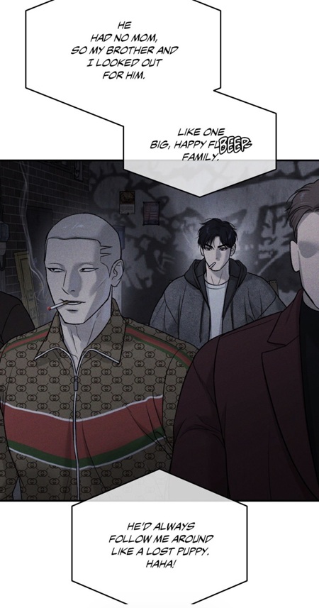 (chapter 96) By presenting a version of Joo Jaekyung who grew up without stable protection—without consistent care—the interview challenges the assumption that such protection is the decisive condition for survival. If the celebrity was once weak, isolated, and exposed, yet became the strong and composed figure she now sees, then his development cannot be fully explained through the model she has relied on. One could say that to Shin Okja, the black wolf is a “Giant of Flesh and Bone”—someone whose strength is real—which makes her realize that her grandson, and her own history, have been built on “Paper.” (the pictures of Kim Dan’s childhood).