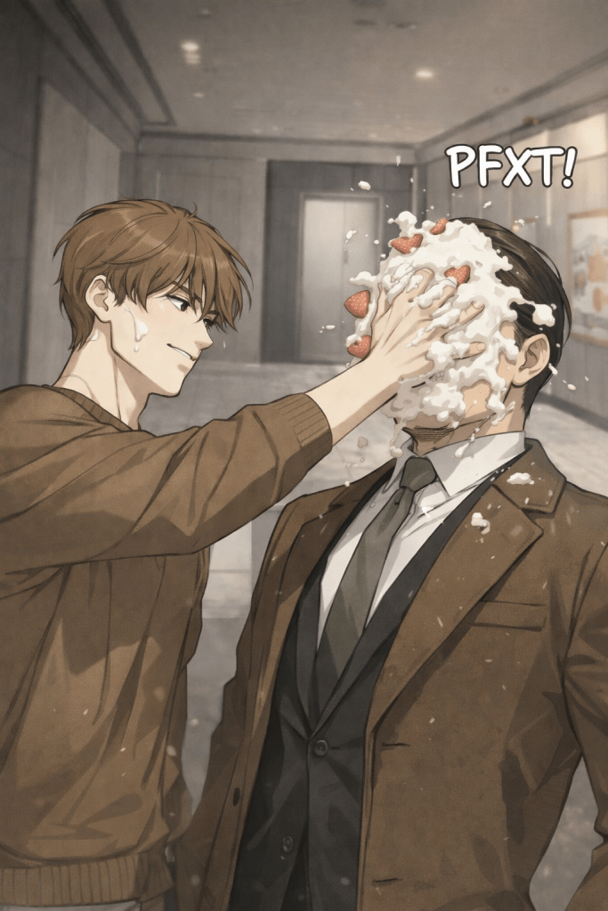 Such a gesture would be funny on the surface, yet deeply meaningful underneath. The current arc is framed by seriousness, gravity, contracts, injuries, and psychological pressure before an important match; a messy burst of cream would instantly shatter that oppressive atmosphere and expose how fragile the staged tension really is. It would also reverse Kim Dan’s usual position in the story. For so long, he has been the one acted upon, blamed, cornered, or used by stronger figures. If he were the one creating the scene, even for a moment, he would step out of passivity and become the active force. More than that, the cake suggests a new relational role.