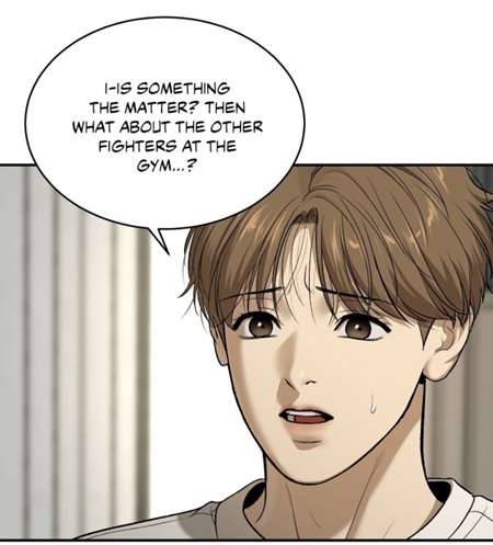 (chapter 49), Joo Jaekyung also encountered Baek Junmin in a hallway while Kim Dan watched from behind. To everyone else, the scene appeared harmless, even cordial: two fighters exchanging a handshake in public view.