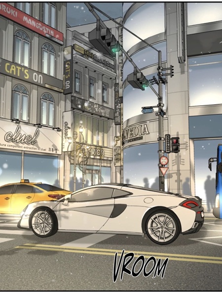 (chapter 97), only after Kim Dan has already advanced and the elevator has closed. This delayed turn transforms a normal greeting into something theatrical. It resembles the timed reveal of an actor who waits for the right cue before facing the audience. Recognition itself is staged.
