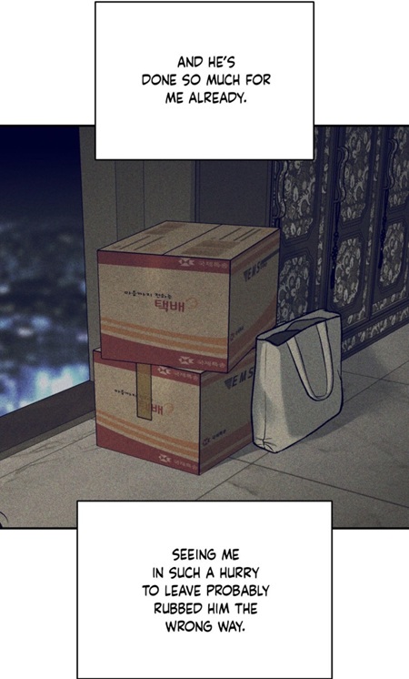 (chapter 97), but how his own actions may have hurt others as well. When he remembers packing in haste and preparing to leave, he no longer sees himself simply as justified and Joo Jaekyung as wrong. He understands that sudden departure, silence, and emotional withdrawal could wound the other person too.