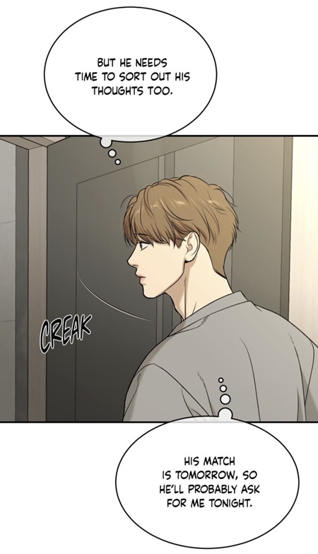 (chapter 54) rather than Kim Dan. He distinguished the real source of harm instead of attacking the nearest vulnerable person. Since then, he has worried about Kim Dan’s meals, noticed his body, bought flowers and cake, remembered small preferences, and even more than ever wants him to stay after the match. Care has begun to replace reflexive aggression.