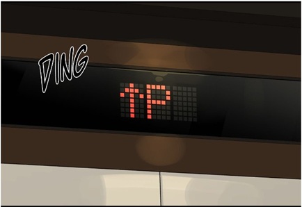 (chapter 97) One might argue that he simply heard the lift arrive and then turned around — yet that is precisely what does not happen. He does not react immediately to the sound of the doors opening and the light.