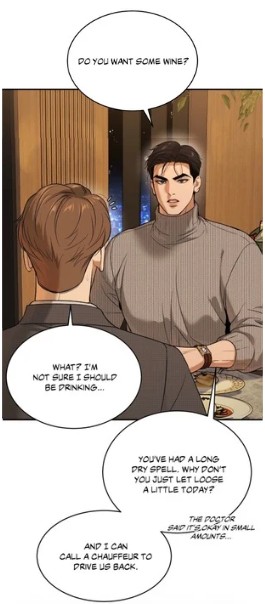 (chapter 97) That present moment is emotional rather than calendrical. Jaekyung does not bring them because the date demands it, but because the relationship does. The gifts answer urgency: recent conflict, approaching uncertainty, and the desire to restore warmth before the match intervenes and the doctor leaves him.