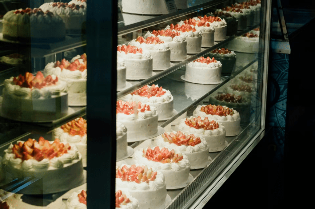 The cake gains additional meaning when placed within its seasonal context. In South Korea, the strawberry shortcake-style dessert displayed in bakeries each December is strongly associated with Christmas celebrations.