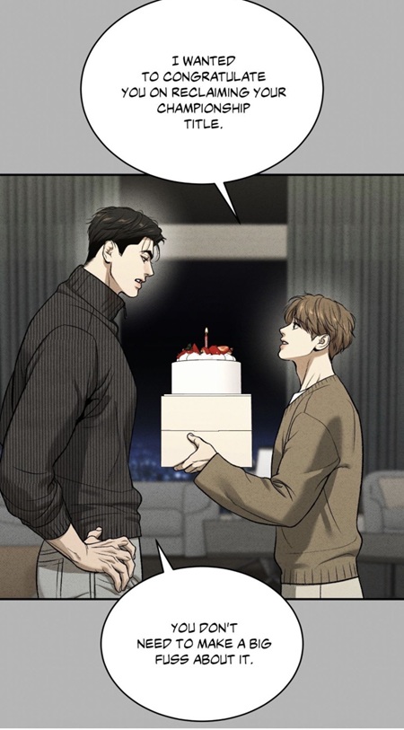 (chapter 97) Kim Dan also purchases the same kind of cake, but not to celebrate his own birthday. He chooses it to honor Jaekyung, expressing pride, care, and happiness for the champion’s success.