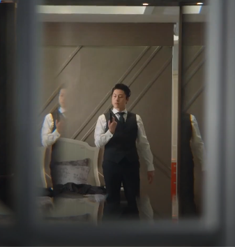 Not only she turns away from Lady Justice indicating that there was a change in her life, but she also turns her back on the statue implying that she has a different goal in her life. Although this scene appeared in the first episode, we discover later that she was the one who sent the notebook to Bong Sang Pil in order to use him to get rid of the people involved in her schemes hence this scene mirrors that CMS had always been aiming higher than justice. Moreover, she had already prepared all the moves BSP would do. She would let him push AOJ to commit more crimes so that he could be cornered. She knew that BSP would attempt to send her former minions to jail so that she would be able to become a judge for the Supreme Court.