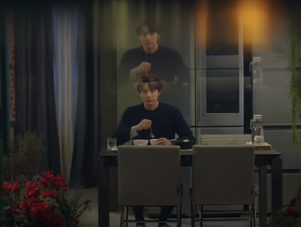 The director had used the same special effect with SJW in an earlier episode so this is the second time that SJW is shown twice. Here, SJW is eating alone in his dining room. YMR wants to keep her distance from him until he knows how to face YMR. She will wait for him until he will solely think of her with this face. This taking should be perceived that way: the old SJW is slowly disappearing, the man who loved WHK but was hurt by her. As time passes on, SJW starts missing YMR more and more. This taking reinforces the loneliness of the surgeon but also his need for YMR’s presence. In this scene, there is no dialogue at all however the director is trying to convey SJW’s inner thoughts and feelings. Just like in the other scene mentioned above, the camera is placed behind a glass so that the viewer can feel that SJW has been living in a prison that he created himself.