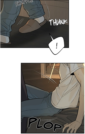 (chapter 60) Kim Dan in bed and Jaekyung on a chair. Yet, this apparent parity hides a reversal of dependency. While Kim Dan is physically and mentally weaker, neglecting his own health to leave the bed,